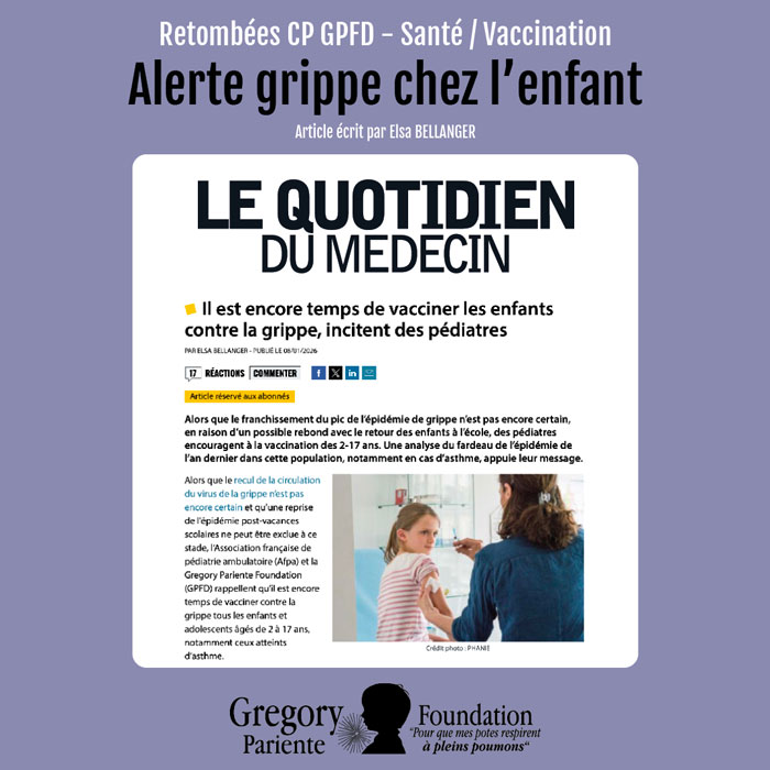 Face à cette situation, la Gregory Pariente Foundation (GPFD) et l’Association Française de Pédiatrie Ambulatoire (AFPA) estimaient qu’il n’est pas trop tard pour vacciner, au 20 janvier, les enfants, en particulier ceux souffrant d’asthme.