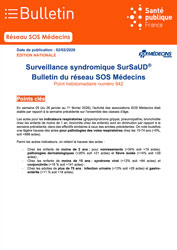 Globalement, en S2/2026, recours aux soins globalement stable ou en diminution chez les adultes mais à nouveau en augmentation chez les enfants, en particulier en médecine de ville. Poursuite de l'augmentation des décès. Ensemble des régions françaises en épidémie excepté La Réunion, en pré-épidémie.