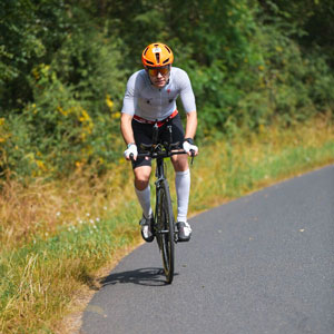 "Au kilomètre 101, je m’arrête donc 8 minutes sous la tente pour prendre un peu d’ombre, manger mon sandwich et reprendre de la ventoline. Je repars frais dans la côte (les organisateurs avaient positionné ce ravitaillement au début d'une bosse), avec des patates et des bretzels dans les poches, ainsi qu'un bidon d'isotonique plein. Je maintiens une allure de 33 km/h sans pour autant me mettre dans le rouge. Je sens que cette sortie longue va bien se passer ! Et puis patatras, les vieux démons reviennent et je commence à avoir des crampes dans tous les orteils au km 145. Je n'avais pas voulu modifier mes cales dans les semaines précédentes, et c'était une grosse erreur. Je passe 35 kilomètres avec un mal de chien dans les deux pieds, j'ai mal quand j'appuie et encore plus quand je ne pédale pas. Je me dis que ce n'est que de la douleur, et je pense à Geo et à son épaule. Je sais ce que c'est, et je ne peux rien y faire. Je continue donc, mais je perds clairement des positions que je n’aurais jamais perdues sans ce petit pépin. Je compte les kilomètres, j’en peux plus, et je ne profite pas des 15 derniers kilomètres en faux plat descendant avec le vent dans le dos."