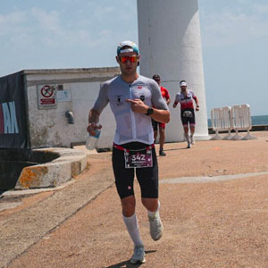 "Il y a un monde fou dès la sortie du parc à vélo. Les premiers supporters du SFT sont là, ce qui rend les choses encore plus folles. Je pars sur un bon rythme, je me sens bien. Mais je sais qu'il faut que je fasse attention sur les 20 premiers kilomètres, car j'ai le vent dans le dos, donc je ne dois pas m'emballer. Et puis, mes parents m'attendent au kilomètre 22, donc je dois être en pleine forme. Il y a un faux plat de 5 km entre le 15^e et le 20^e kilomètre, je ne le vois même pas, les sensations sont folles. La trifonction est un régal et j’ai le cul dans du coton."