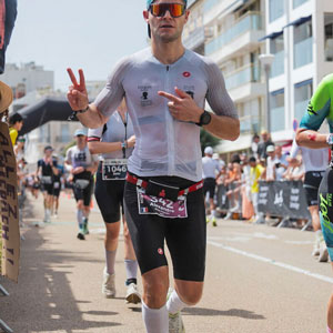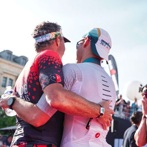 "Le speaker présente le projet et demande à tout le monde de faire un big up, c’est trop stylé. Un bénévole me met la médaille autour du cou, et là, toute l’émotion me submerge. Je réalise ce que je viens de faire, et je suis tellement heureux d’avoir maintenant ce magnifique message à transmettre à tous les asthmatiques. Mon père est là, juste derrière les barrières, et je l'embrasse fort. Le moment est indescriptible. Je sais que David, mon ami, est quelques minutes derrière moi et je décide de l’attendre pour le voir franchir lui aussi cette arche mythique pour la première fois. J’ai donc quelques minutes pour réaliser, être ému et rester dans l’ambiance de cette ligne d’arrivée. David franchit la ligne et c’est peut-être le moment le plus émouvant de la journée. Je suis tellement fier de le voir arriver au bout de son rêve. On se prend dans les bras pendant de longs instants. Cette émotion est inégalable, indescriptible, bordel que c'est bon et beau ! Et le plus beau, c’est que je me sens bien, pas cassé du tout. J’ai déjà envie de m’aligner sur mon prochain IM avec vous, les copains!."