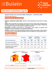 En S48, l'activité grippale était en nette augmentation dans toutes les classes d'âge dans l'hexagone, indiquant une accélération de la circulation des virus grippaux. Trois régions étaient passées en épidémie en S48: Ile-de-France, Normandie et Nouvelle-Aquitaine. Les autres régions hexagonales étaient passées en pré-épidémie, excepté la Corse. Les virus de type A prédominaient très largement, avec une augmentation depuis S47 de la part du sous-type A(H3N2) par rapport au sous-type A(H1N1)pdm09. Parmi les virus grippaux séquencés depuis fin septembre, le sous-clade K était majoritaire pour le sous-type A(H3N2) et le sous-clade D.3.1 était majoritaire pour le sous-type A(H1N1)pdm09. En outre-mer, l'activité grippale était à son niveau de base excepté à Mayotte, en épidémie depuis la S47.