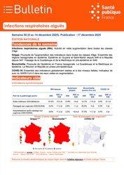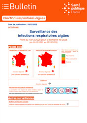 Selon le bulletin IRA -S 50-SPF :« En S50, les indicateurs grippaux continuaient d’augmenter dans toutes les classes d'âge dans l'Hexagone, où l'ensemble des régions étaient en épidémie. L'activité grippale en ville et à l'hôpital atteignait le niveau d'intensité modérée chez les moins de 15 ans et chez les 65 ans ou plus, et demeurait à un niveau d'intensité faible chez les 15-64 ans et tous âges confondus. La part de la grippe parmi les décès déclarés par certificat électronique augmentait et était à un niveau deux fois supérieur à celui observé en S50/2024 (1,8% vs 0,9%). De plus, le nombre d'épisodes de cas groupés d'Infections respiratoires aiguês( IRA) en établissements médico-sociaux (EMS) exclusivement attribués à la grippe a fortement progressé en S49 par rapport à la semaine précédente (57 vs 29, données non consolidées). Les virus de type A prédominaient très largement, avec une proportion du sous-type A(H3N2) supérieure par rapport au sous-type A(H1N1)pdm09 depuis S48. Parmi les virus grippaux séquencés depuis fin septembre, le sous-clade K était majoritaire pour le sous-type A(H3N2) et le sous-clade D.3.1 était majoritaire pour le sous- type A(H1N1)pdm09. En Outre-mer, l'activité grippale était à son niveau de base à La Réunion. La Guyane était en épidémie depuis S49, avec une circulation active de virus grippaux de type A. Mayotte demeurait en épidémie depuis S47. Aux Antilles, la Guadeloupe et la Martinique étaient passées en pré-épidémie et Saint-Martin en épidémie en S49, avec également une circulation de virus grippaux de type A ».